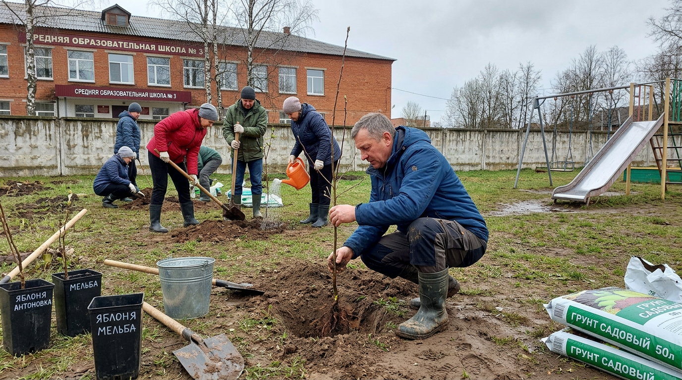 Мэр Курска и родители высадили яблоневый сад у школы №23